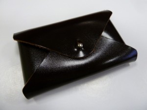 Оригинальная визитница, выполнена из натуральной кожи без подкладки. Верхний клапан фиксируется кобурной кнопкой. |